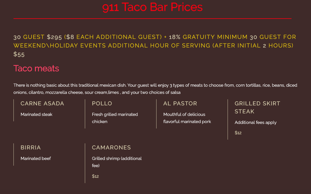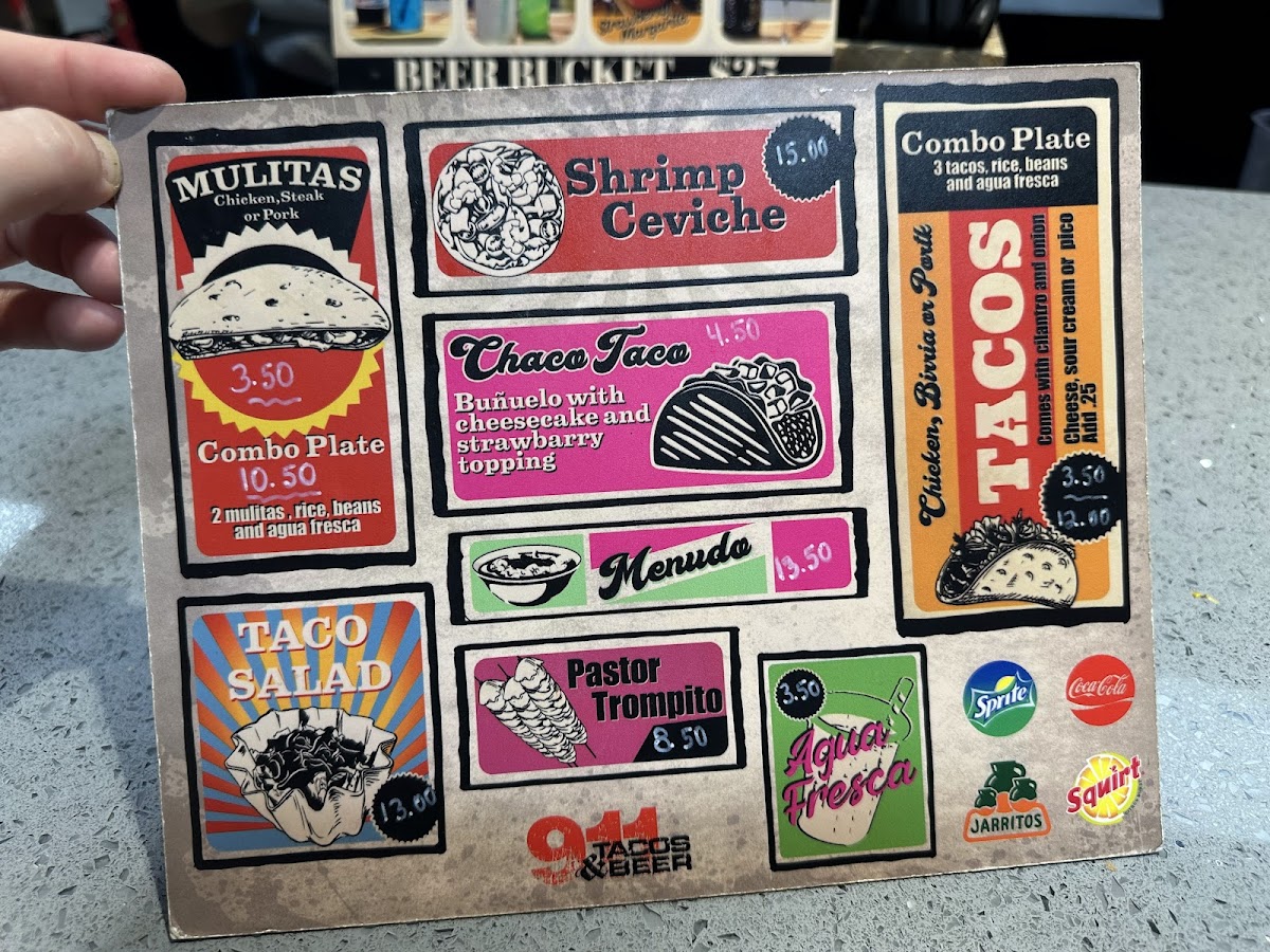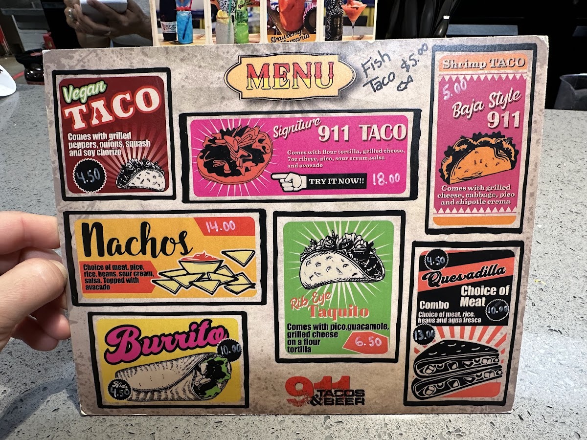 911 Taco Bar offers a variety of flavorful dishes that cater to a wide range of tastes. The Vegan Taco is a great option for plant-based eaters, delivering delicious flavors without compromise. For those craving something spicier, the Signature 911 Taco provides a bold and fiery taste. If you’re in the mood for seafood, the Shrimp Taco offers a fresh and savory option. Pair these tasty tacos with a side of Nachos, which make for the perfect crunchy accompaniment. For a heartier meal, the Burrito is sure to satisfy, wrapped with all your favorite fillings. To quench your thirst, the restaurant serves refreshing drinks such as Aqua Fresca, Sprite, Jarritos, Coca Cola, and Squirt. With a simple but satisfying menu, 911 Taco Bar is a must-visit for anyone in Las Vegas craving a quick, flavorful meal.